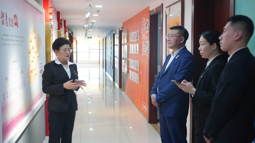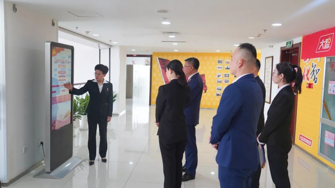 王現(xiàn)芹帶領大家參觀了黨建長廊,詳細介紹了大智組織架構、企業(yè)文化等相關情況,以及“智惠黨建一三九”黨建工作模式,黨建引領下的“一帶一促”群團建設理念和“智惠+”群團建設模式,大家對大智的黨建工作給予了充分肯定和高度認可。