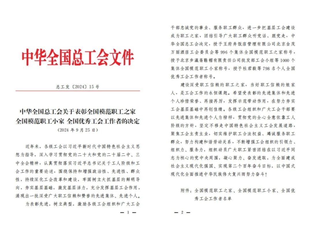 近日,中華全國總工會發布《關于表彰全國模范職工之家 全國模范職工小家 全國優秀工會工作者的決定》(總工發〔2024〕15號),山東大智控股集...