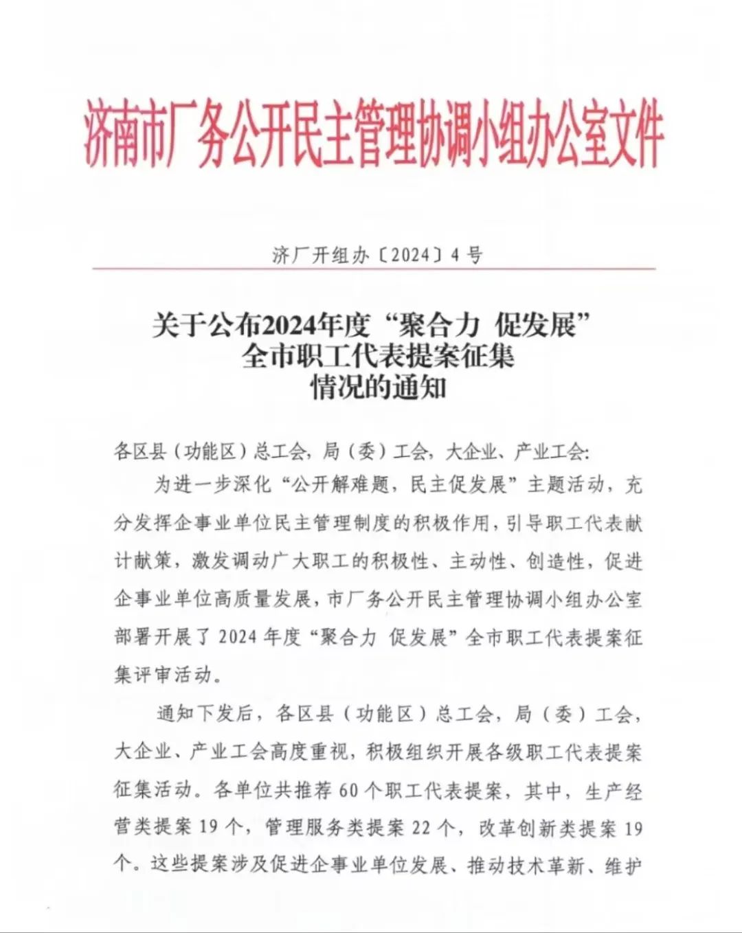 近日,濟南市總工會下發《關于公布2024年度“聚合力 促發展”全市職工代表提案征集情況的通知》,大智控股集團工會《關于對師范畢業生開展素養提...