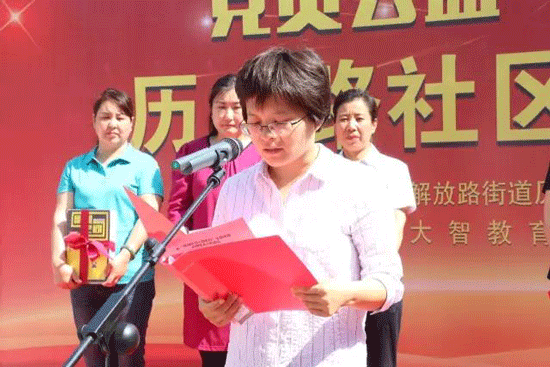 緊接著,王現芹現場做表態發言,她表示:大智控股集團將發揮教育資源優勢,在解放路街道的社區內持續開展“家長學?!?、 “百名學子免費助學計劃”、“‘愛心傳遞,知識傳承’公益贈書”等一系列公益活動。