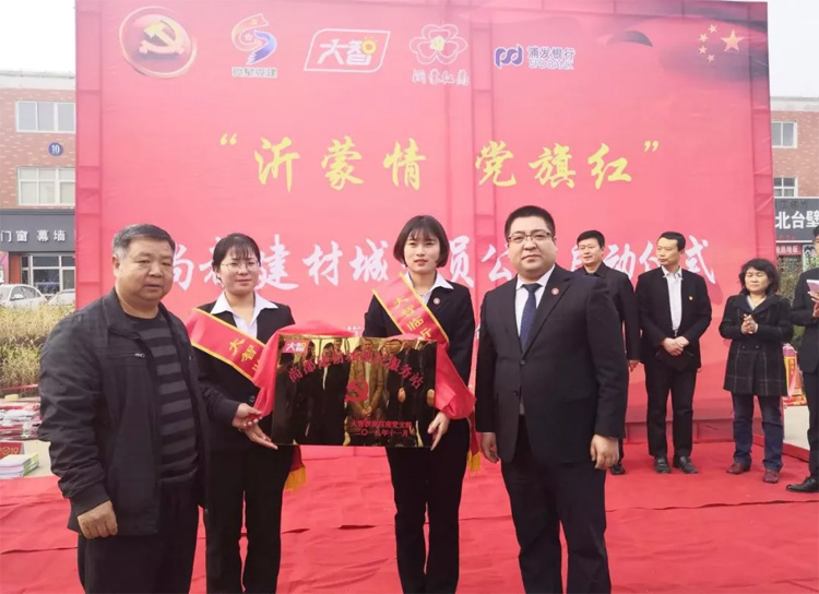 11月30日,臨沂市莒南縣市場監(jiān)督管理局、個體私營企業(yè)委員會與大智臨沂區(qū)域莒南黨支部聯(lián)合組織的黨員公益活動“沂蒙情 黨旗紅”啟動儀式在莒南尚都建材城隆重舉行。莒南市場監(jiān)督管理局副局長、機關黨委書記逯宗秋,市場監(jiān)督管理局公平交易局局長、個私黨委副書記盧勇成等領導及商城黨員、群眾代表參加活動。