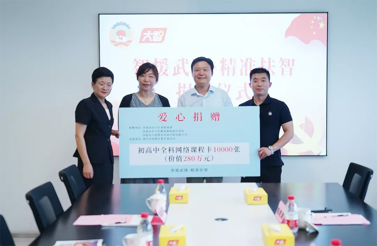 儀式上,大智為歷下區委統戰部在東西部扶貧協作中對口幫扶的重慶武隆區捐贈總價值280萬元的大智公開課(初高中全科網絡課程)VIP卡10000張。