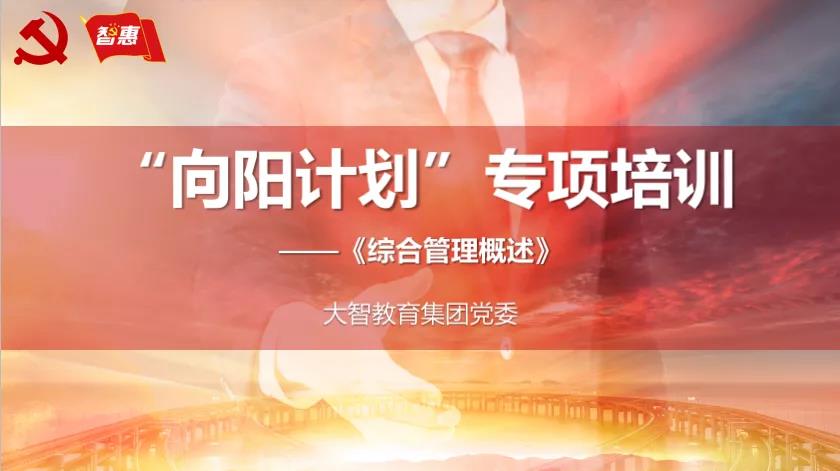 為進一步提高黨員骨干的綜合素養,落實好“三個著力凝團隊”,把業務骨干培養成黨員,把黨員培養成業務骨干,把黨員業務骨干培養成管理人才,為集團干部隊伍輸送新生力量,集團黨委從一線選拔了一批思想積極向上、愿意扎根大智平臺的優秀黨員,進行“向陽計劃”專項培訓。
