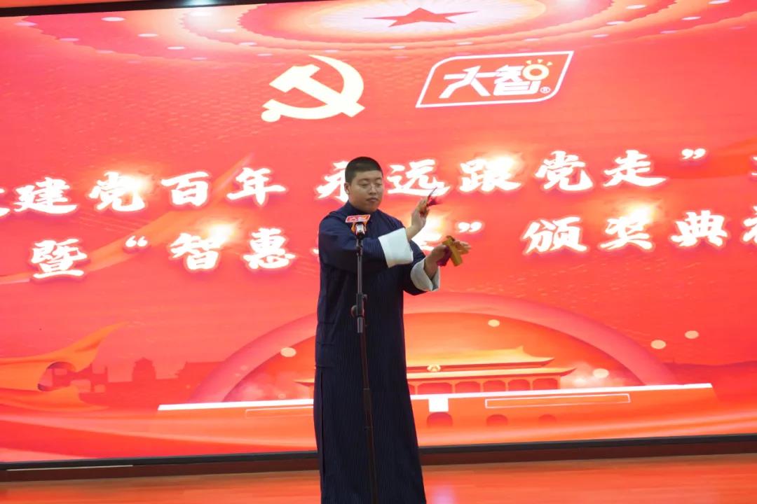 6月30日,為紀念建黨100周年,回顧黨的光輝歷程,歌頌黨的豐功偉績,大智黨委特舉行“智敬建黨百年 永遠跟黨走”文藝晚會暨“智惠先鋒”頒獎典禮。歷下區市場監督管理局個體私營服務中心主任康勇,濟南市歷下區個體私營協會主任姜榮,大智教育集團黨委書記王現芹,大智教育集團創始人、董事長張維東等參加此次晚會。