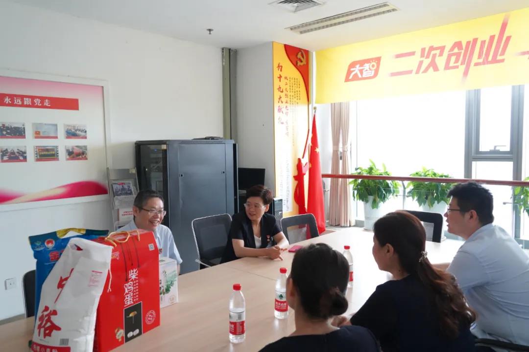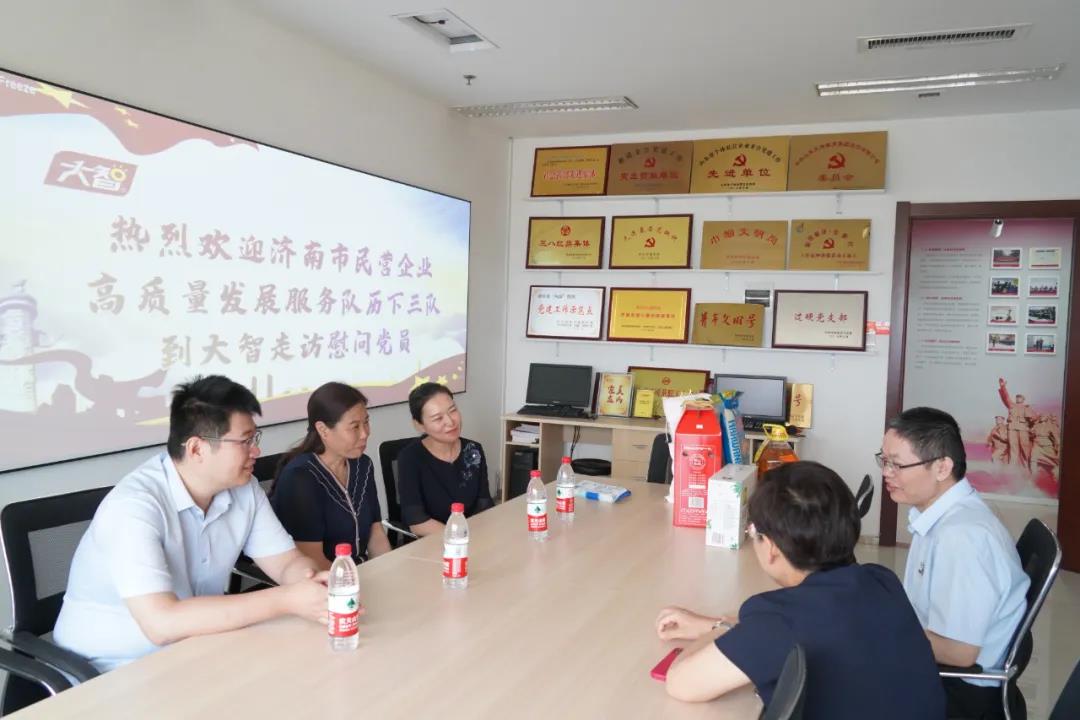7月1日,濟(jì)南市民營企業(yè)高質(zhì)量發(fā)展服務(wù)隊(duì)到大智慰問光榮在崗老黨員。大智教育集團(tuán)黨委書記王現(xiàn)芹熱情接待。
