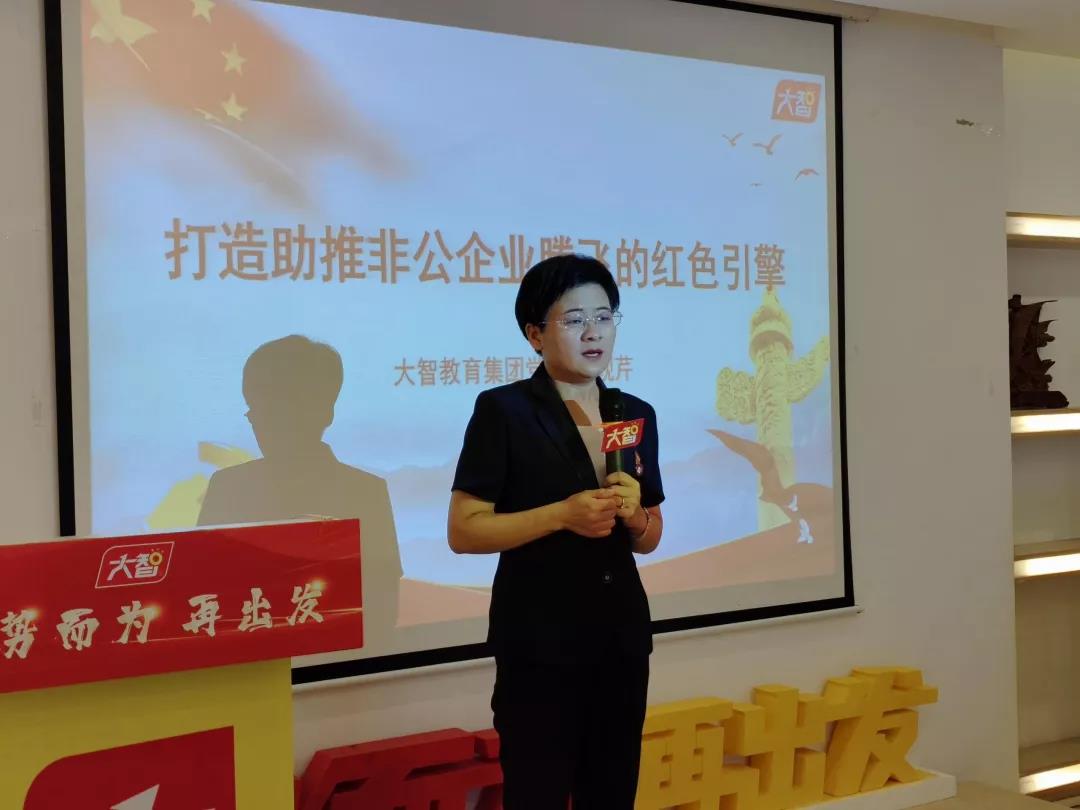 王現(xiàn)芹表示,大智始終履行新時代黨的建設要求,秉持著“黨務支持業(yè)務,業(yè)務反哺黨務”的黨建理念,旗幟鮮明抓黨建、強黨建,打造黨建引領的企業(yè)文化。近年來,大智教育集團黨委在實踐中探索出“智惠黨建一三九”工作模式,形成“一帶一促”群團建設理念和“智惠+”群團建設模式。
