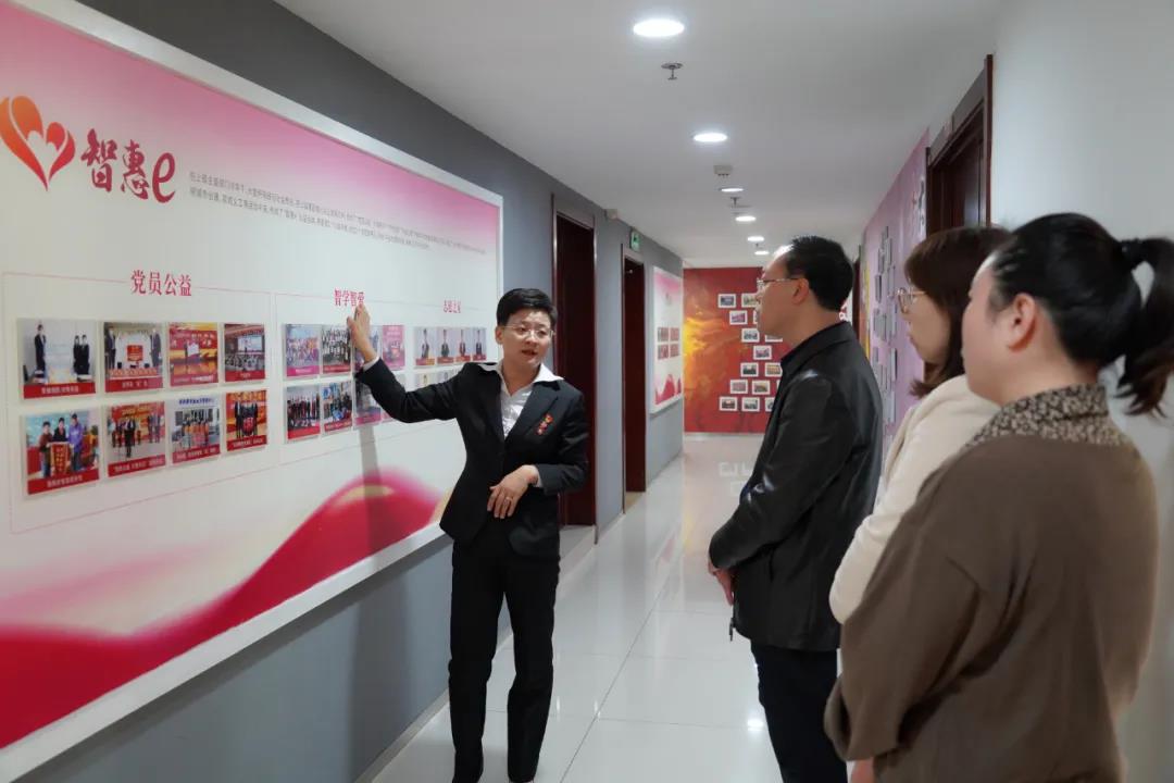 王現芹帶領大家參觀了黨建長廊、黨員活動室,翻閱大智黨建相關資料,并觀看黨建宣傳片。大家對大智的黨建工作給予了充分肯定和高度認可。