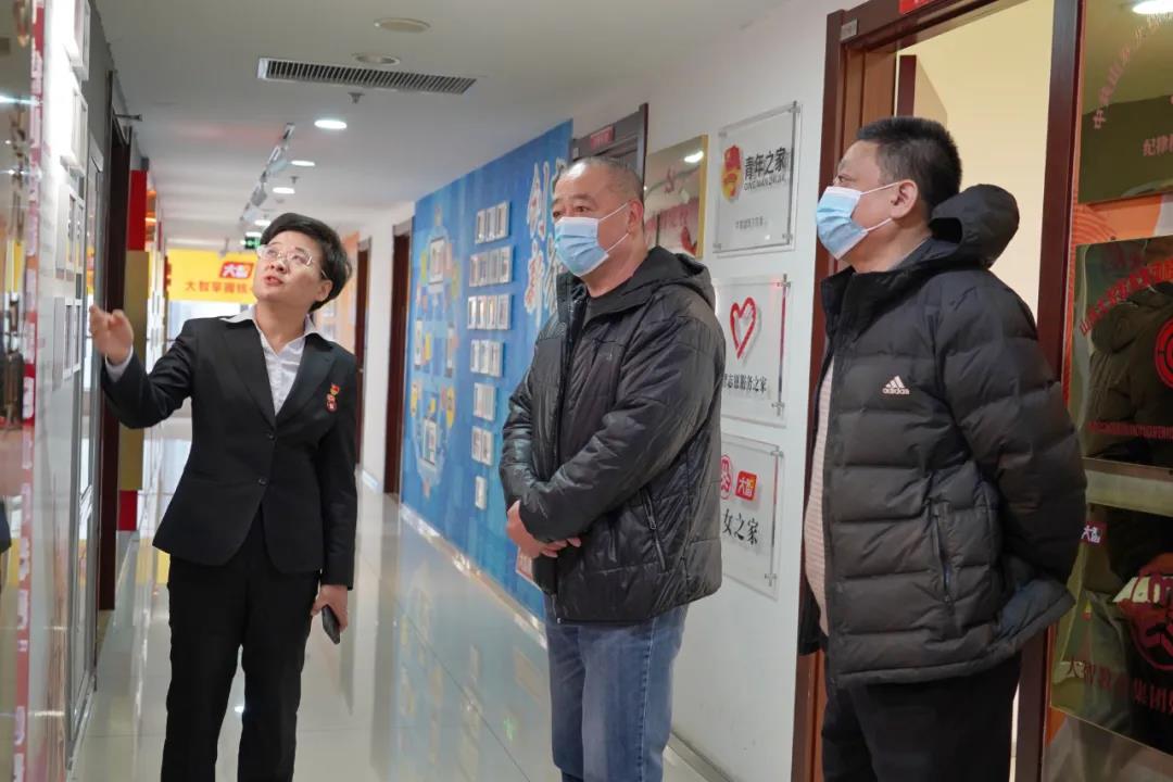 2月24日上午,濟南市歷下區市場監管局田豐副局長,康勇主任蒞臨大智調研。大智教育集團黨委書記王現芹熱情接待。 王現芹書