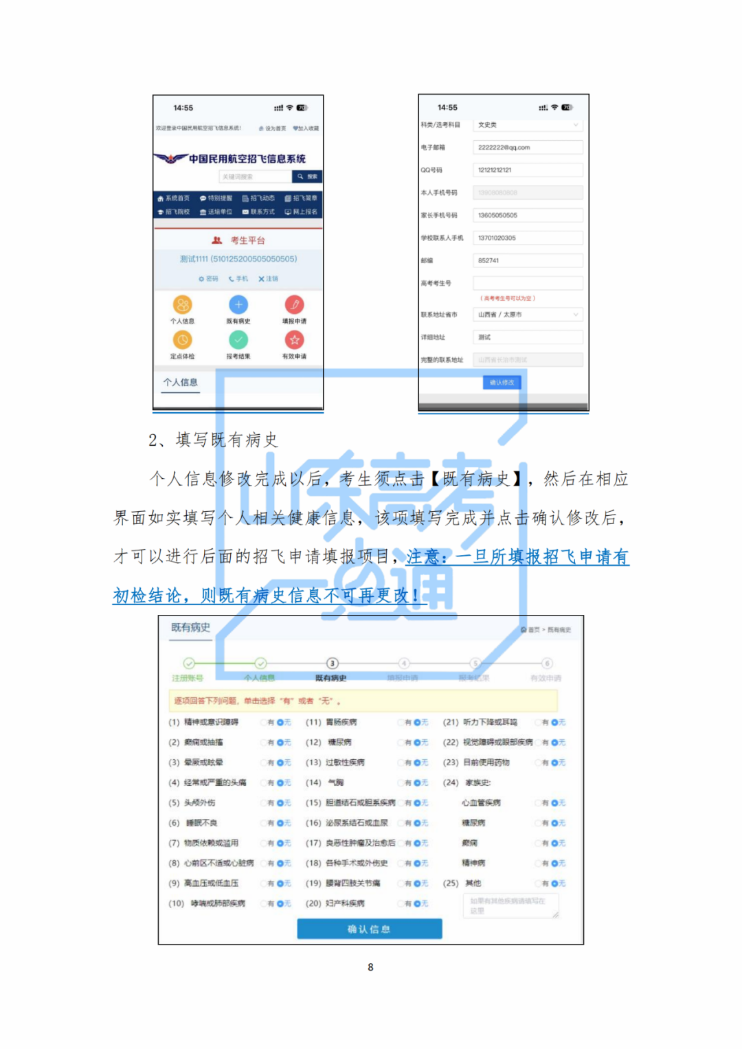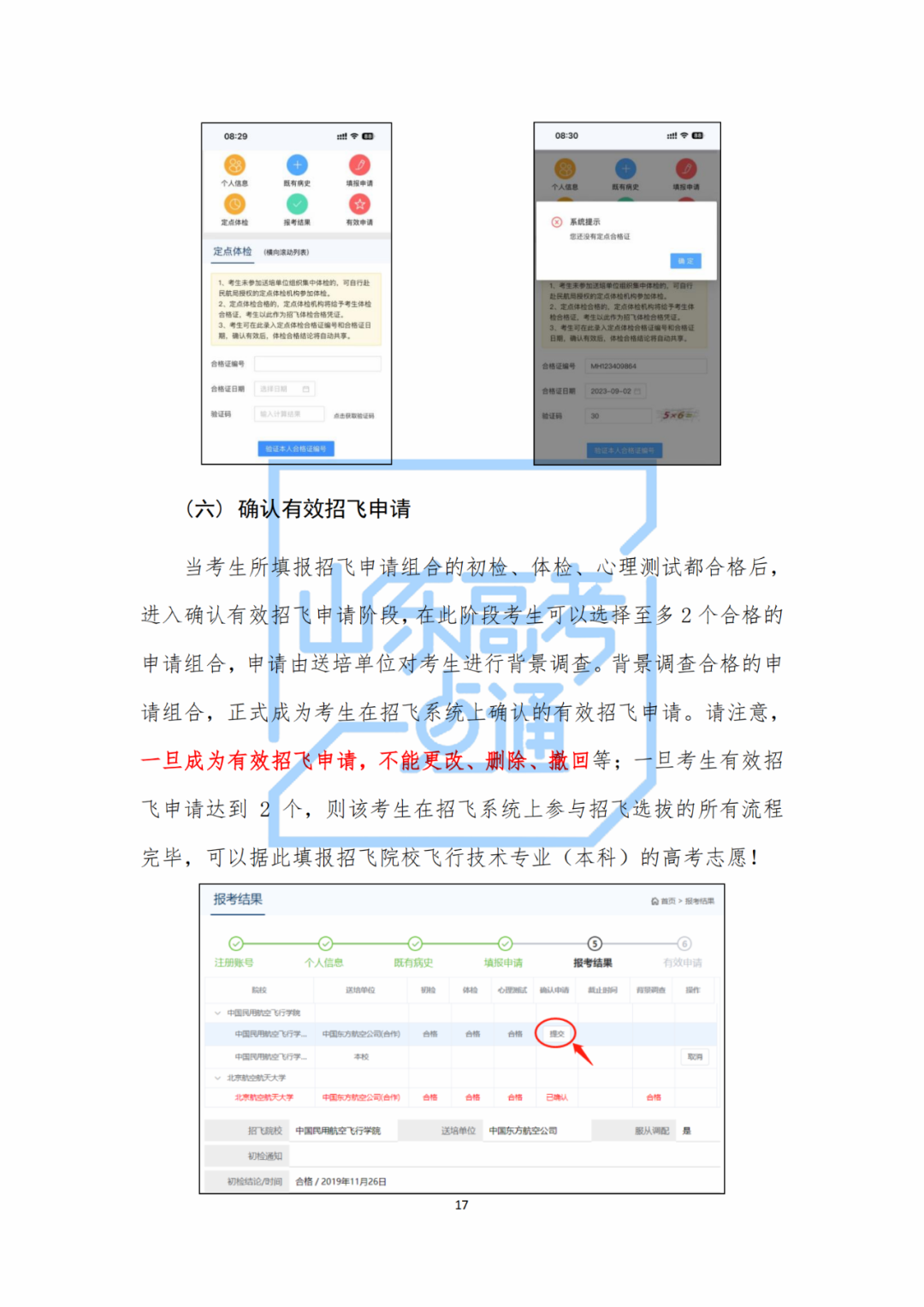 7、一定不要在申請組合體檢狀態為“在體檢”(即招飛系統上還未得出體檢結論)時,去參加其他申請組合送培單位組織的體檢!