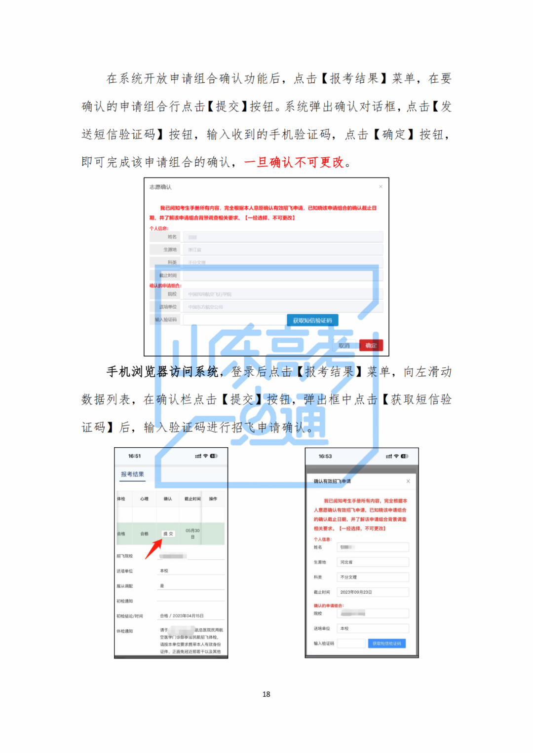 4、請務必在系統開通確認有效招飛申請階段(2024年2月17日至各送培單位自行設定的截止日期)再次登錄本系統選擇符合要求的招飛申請組合進行確認。請務必在參加背景調查之前登陸系統對相應的申請組合進行確認!
