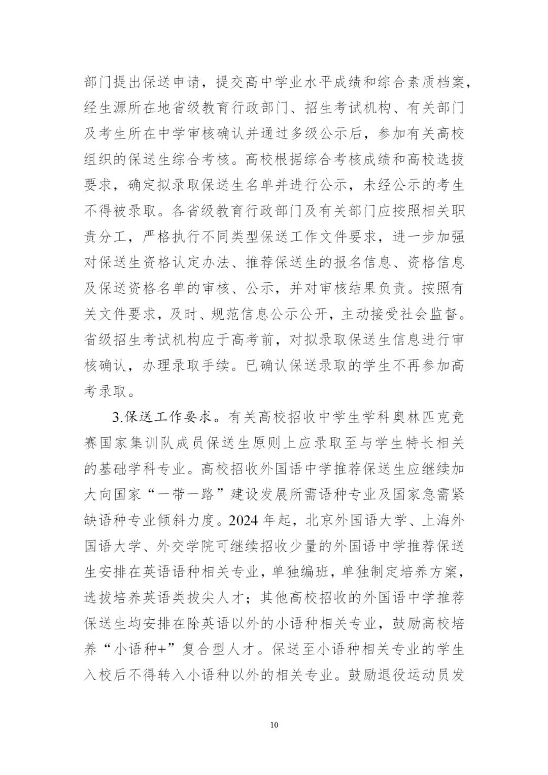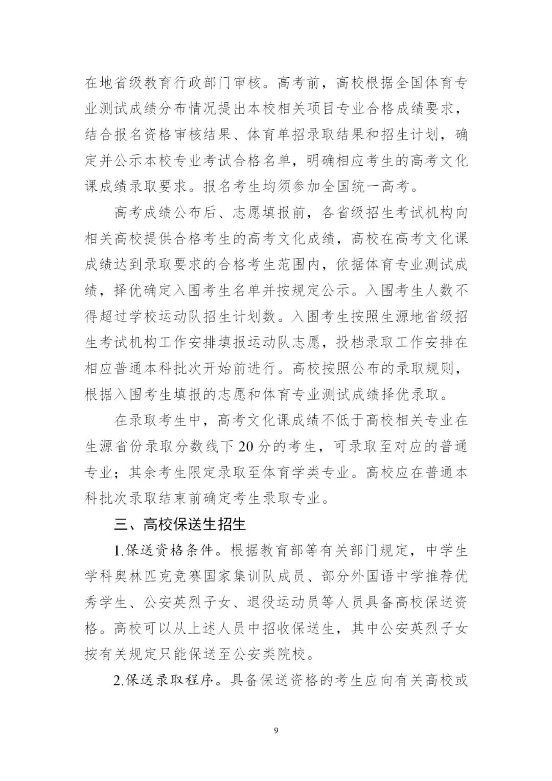高校藝術類專業、高水平運動隊、保送生招生工作嚴格按照本通知要求執行。教育部授權各地各高校組織的單獨招生、強基計劃、高校專項、綜合評價、拔尖創新人才選拔培養等考試招生工作參照執行。本通知未盡事宜按照當年有關招生工作規定執行。請各省級教育行政部門將本通知轉發至本行政區域內有關高校。