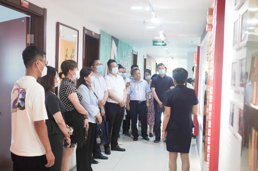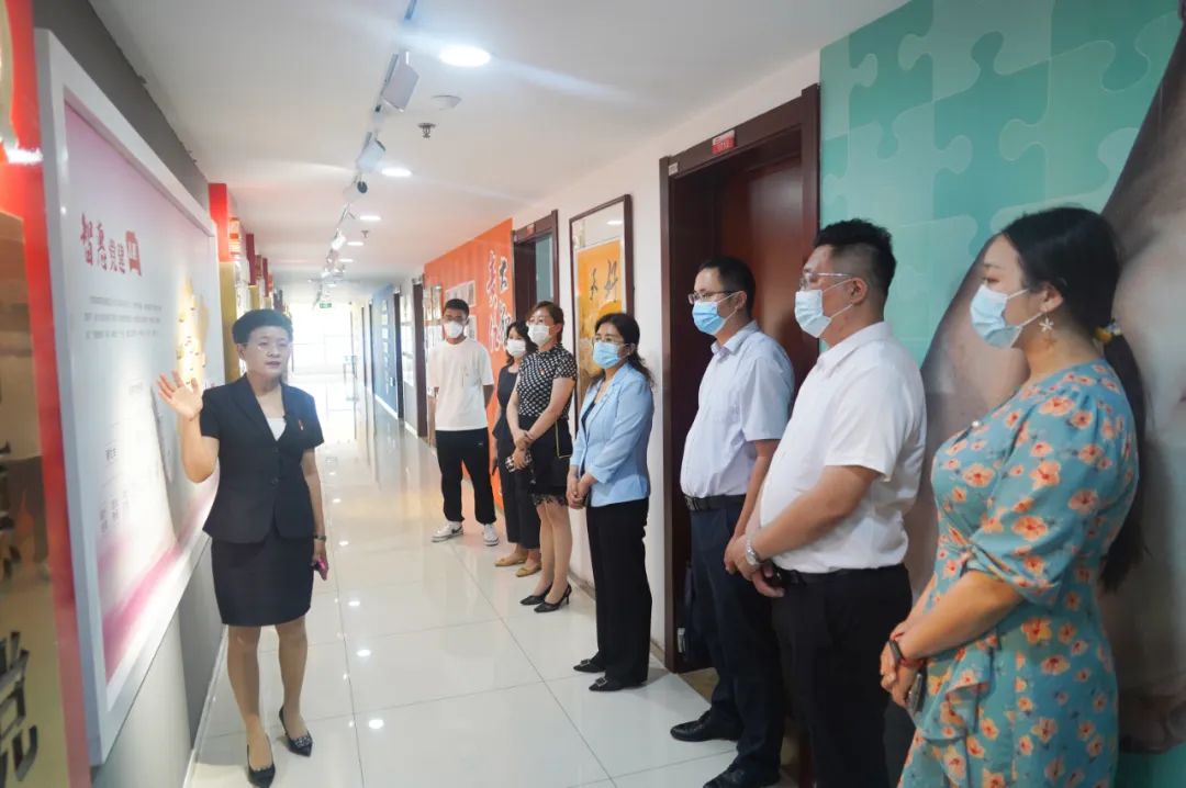 王現芹帶領大家參觀了黨建長廊,詳細介紹了大智組織架構、企業文化等相關情況,以及“智惠黨建一三九”黨建工作模式,黨建引領下的“一帶一促”群團建設理念和“智惠+”群團建設模式。