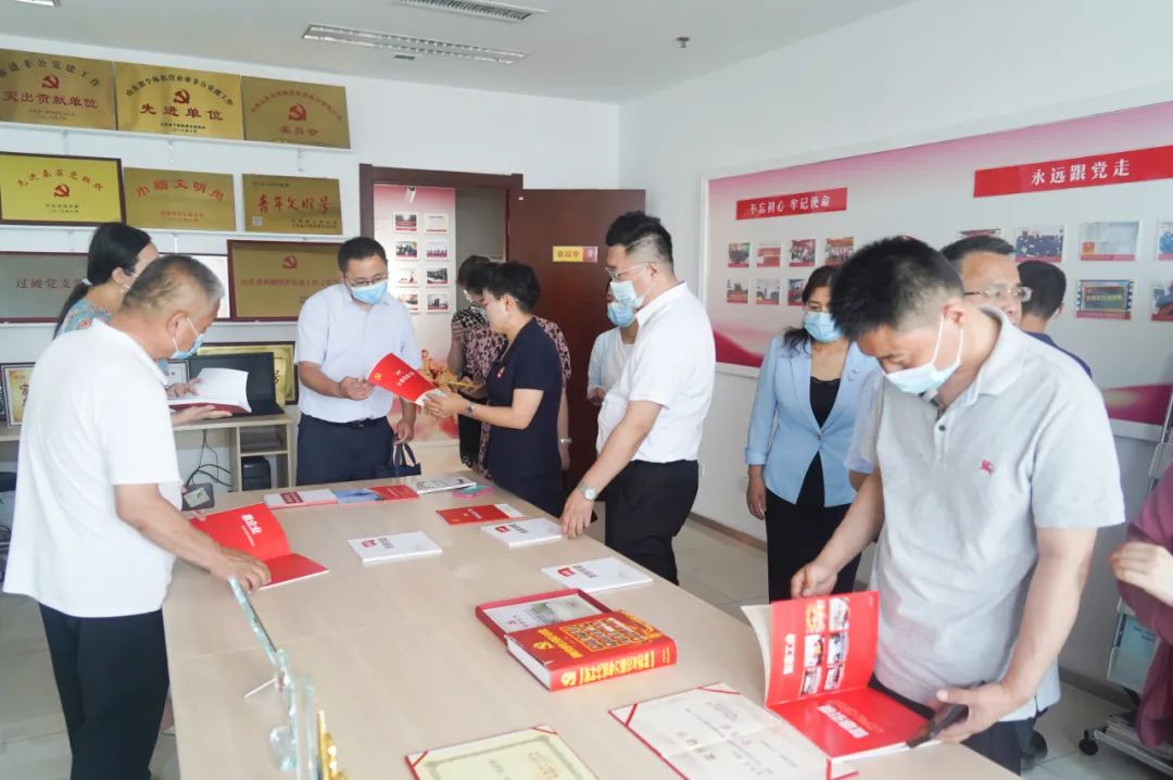 參觀黨員活動室,翻閱查看大智黨建相關資料。
