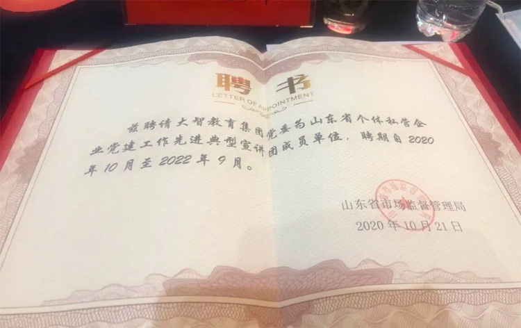 近日,全省個體私營企業黨建先進典型宣講暨現場觀摩會議在泰安舉行。山東省市場監管局黨組書記、局長侯成軍等省市場監管局主要領導,泰安政府主要領導、各市局主要領導及個體私營企業主要負責人300余人參加現場會議。各市局分管領導等單位負責人3000多人參加視頻會議。會議現場,山東大智控股集團黨委書記王現芹做了以《智惠黨建引領發展》為主題的典型宣講,大智控股集團黨委被聘任為“山東省個體私營企業黨建工作先進典型宣講團成員單位”。