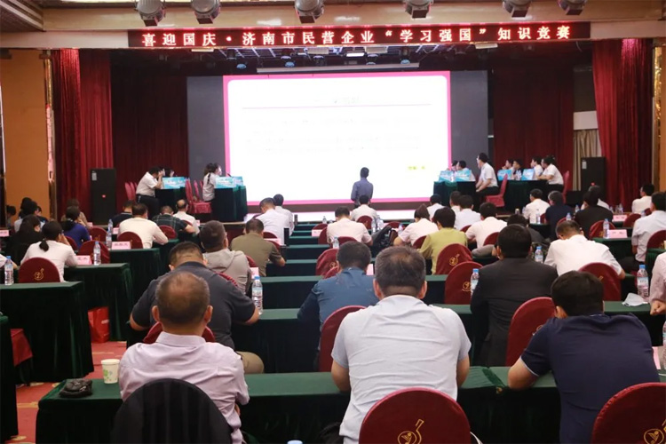 為點(diǎn)燃濟(jì)南市民營企業(yè)廣大職工的學(xué)習(xí)熱情,提升職工理論素養(yǎng),營造濃厚的學(xué)習(xí)氛圍,在國慶節(jié)來臨之際,2020年09月25日上午,由濟(jì)南市民營企業(yè)高質(zhì)量發(fā)展服務(wù)隊主辦,山東大智控股集團(tuán)黨委承辦的“百+黨建工程”喜迎國慶·學(xué)習(xí)強(qiáng)國知識競賽活動在濟(jì)南玉泉森信大酒店四樓泉順廳順利舉辦。