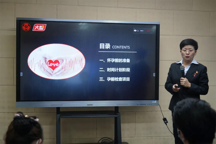 課堂上,孕前指導(dǎo)學(xué)校的組織者——大智控股集團(tuán)黨委書記、婦聯(lián)主席王現(xiàn)芹從“懷孕前的準(zhǔn)備”“時(shí)間計(jì)劃階段”“孕前檢查項(xiàng)目”三個(gè)方面為大家?guī)砹嗽敿?xì)的孕前知識(shí)解讀,同時(shí)結(jié)合自身經(jīng)歷,現(xiàn)場為員工們進(jìn)行答疑解惑。