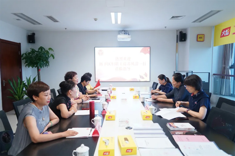 08月20日,濟南市歷下區婦聯主席蘇鳳清蒞臨大智控股集團總部調研婦建工作,歷下區女企業家協會會長王新敏、大智控股集團黨委書記、婦聯主席、歷下區女企業家協會黨支部書記王現芹熱情接待。