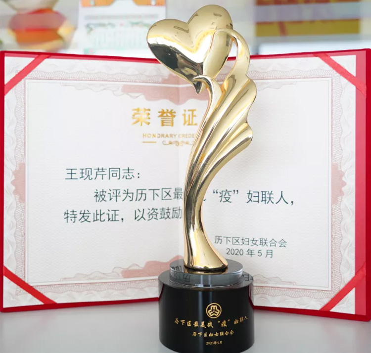 05月13日,濟南市歷下區慶祝國際家庭日暨最美戰“疫”巾幗典型“送獎到家、送獎到崗”座談會在歷下區人民醫院召開。歷下區委副書記尹紅梅,歷下區婦聯黨組書記、主席李健及獲獎代表參會。會上,尹紅梅為大智控股集團黨委書記、婦聯主席王現芹頒發了市區兩級“最美戰‘疫’婦聯人”榮譽獎杯和證書。