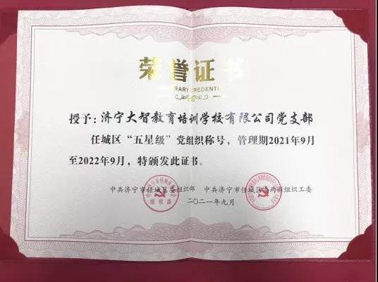 此次獲評“五星級”黨組織稱號,充分展現了任城區委對濟寧大智黨建工作的肯定和勉勵,同時也是一種鞭策和期許。接下來,在建黨100周年之際,大智濟寧區域黨支部將繼續深化基層黨組織標準化和規范化建設,持續在激發黨建活力上下功夫,推動黨建與經營管理深度融合,進一步提升黨支部建設整體水平,為濟寧區域高質量發展提供堅強的組織保障。