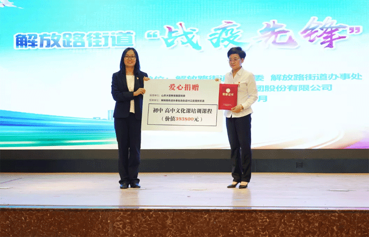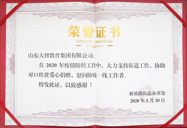 戰(zhàn)疫不忘扶貧,活動現(xiàn)場,大智向解放路街道辦事處及街道對口支援扶貧縣城捐贈價值393800元公益課程,街道辦事處現(xiàn)場為大智頒發(fā)榮譽(yù)證書,對大智表示感謝。
