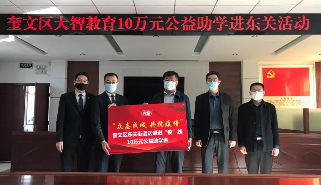 新冠疫情爆發期間,大智濰坊區域黨支部牢記使命勇擔當,充分發揮黨員先鋒模范作用,組織發起募捐活動,累計募捐2450元愛心善款和9臺愛心音響,為疫情防控提供硬件設備支持,打通疫情防控最后一公里。同時聯合奎文區東關街道共同發起“送課進‘疫’線公益助學”活動,捐贈助學金共10萬元,黨員公益,大智先行!