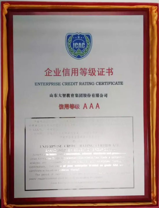 近日,經濟南市企業信譽評價工作委員會嚴格審核與評估,大智教育集團被評定為企業信用等級AAA級,按照企業信用等級標準,AAA級為最高信用等級。...