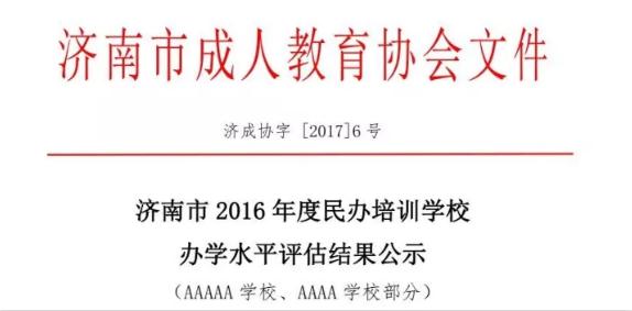 10月29日,從濟南市教育局傳來喜訊,濟南市歷下區大智培訓學校在2016年度民辦培訓學校辦學水平評估中,被評為 “AAAAA學校”,根據《濟...