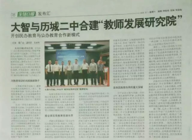 09月30日,大智與濟南市歷城第二中學在山東新聞大廈舉辦“聯合共建教師發展研究院”揭牌儀式,開啟了民辦教育與公辦學校攜手共建的新模式。消息一...