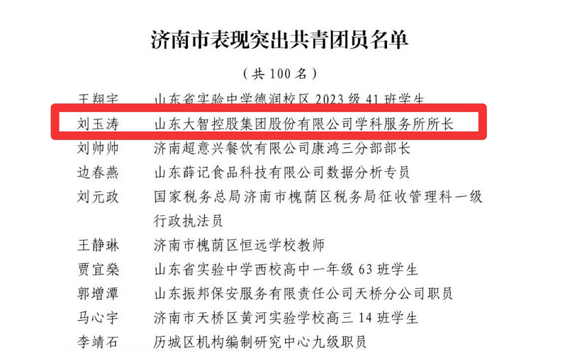 近日,共青團濟南市委發布《共青團濟南市委關于表揚在2024年度濟南市共青團工作中表現突出集體和個人的通報》,大智控股集團學科服務所所長劉玉濤...
