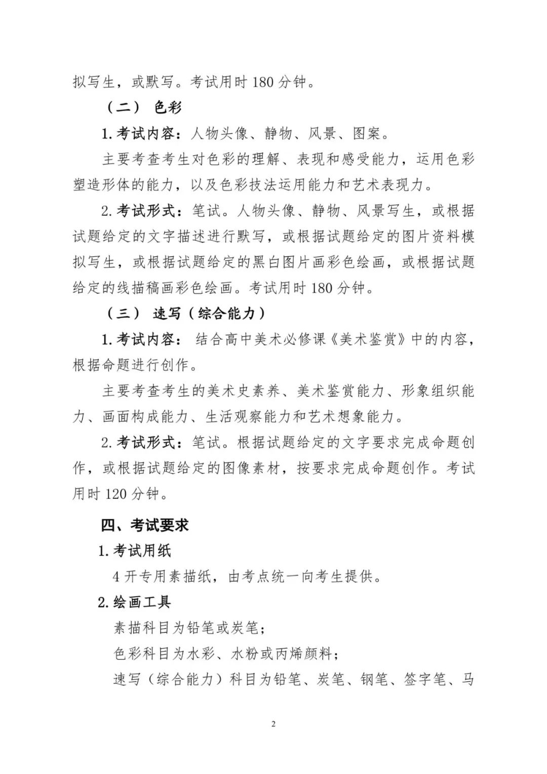 美術與設計類專業統考包括素描、色彩、速寫(綜合能力)三個科目,每科目分值均為100分,總分為300分。