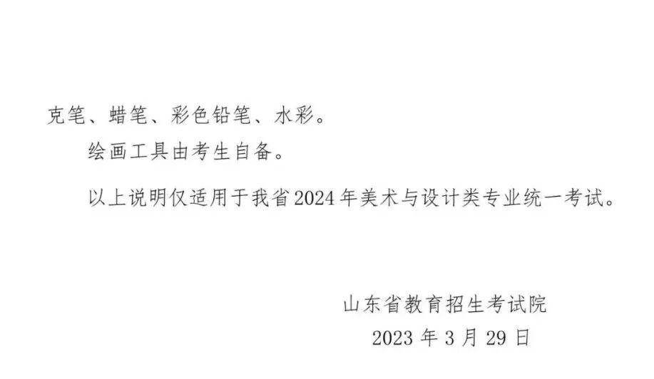 據山東省招生考試院發布的通知安排,2024年普通高校招生藝術類專業全省統一考試(筆試)將于2023年12月17日舉行,2023年12月下旬舉行2024年普通高校招生藝術類專業全省統一考試(現場)。