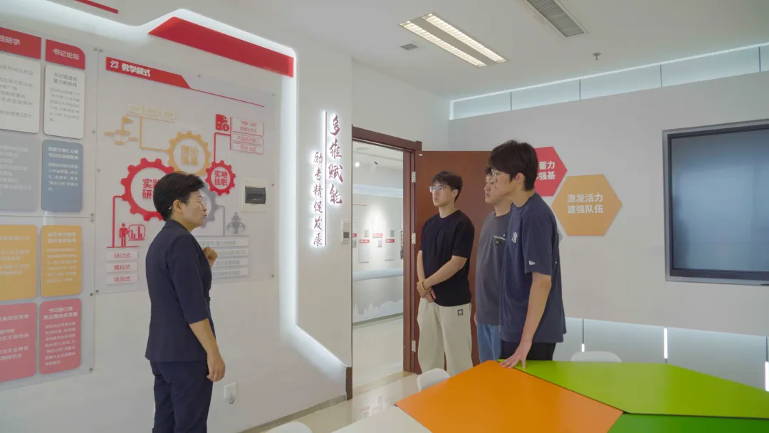 在大智黨委書記王現(xiàn)芹的帶領(lǐng)下,學(xué)生們參觀了在大智總部興建的歷下區(qū)新興領(lǐng)域黨建先鋒學(xué)院,通過實地觀摩切身感受了歷下區(qū)新興領(lǐng)域黨建的蓬勃發(fā)展。隨后,雙方舉行座談交流會。座談會上,同學(xué)們圍繞"大智黨建如何發(fā)揮實效作用"、"新興領(lǐng)域黨建當(dāng)前存在的問題"、"新興領(lǐng)域黨建如何創(chuàng)新"等問題踴躍提問,王現(xiàn)芹書記結(jié)合具體案例一一作答。現(xiàn)場互動熱烈,學(xué)生們表示,這種"走出課堂、走進(jìn)企業(yè)"的實踐學(xué)習(xí)方式,使大家對黨建理論的理解更加深入、具體,增強了對新時代黨建工作的感性認(rèn)識和理性思考。
