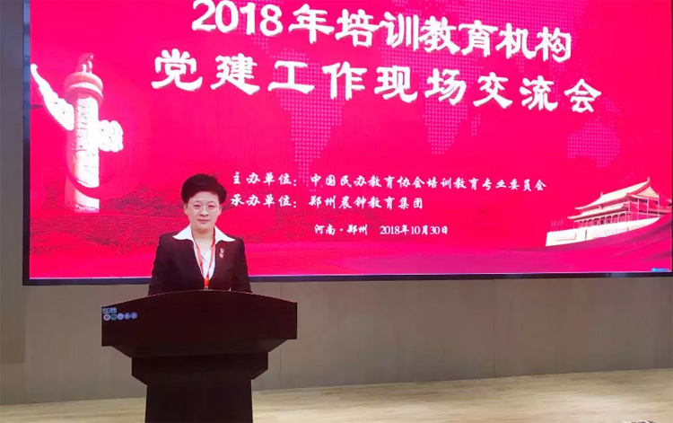 10月30日,由中國民辦教育協會培訓教育專業委員會主辦的2018年培訓教育機構黨建工作現場交流會在鄭州舉行。中國民辦教育協會會長王佐書等各級領導蒞臨大會,來自全國20個省市近100家培訓教育機構的200余名黨務工作者參會。大智控股集團黨委書記王現芹現場做典型發言,分享大智黨建經驗成果。