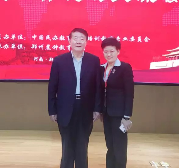 (王現芹與中國民辦教育協會培訓教育委員會理事長張強合影)