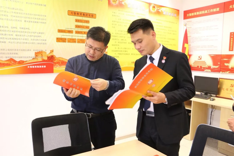 考察中,朱玉峰一行參觀了大智控股集團總部,雙方圍繞著黨建工作、團隊建設、教研師訓、教學服務等主題展開了深入的交流和探討。