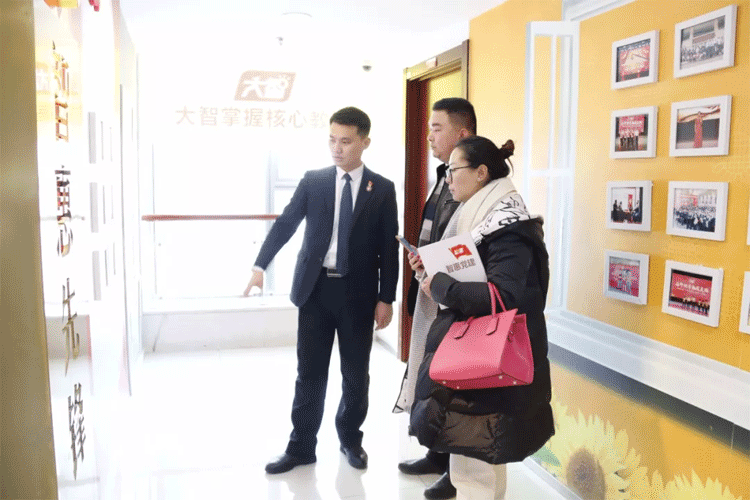 01月21日,山東魯宴項目管理有限公司項目經理高峰一行在濟南市歷下區解放路街道黨工委黨辦徐曼同志的帶領下蒞臨大智參觀交流黨建工作,大智教育集團黨委書記王現芹、黨委委員常廣成熱情接待。