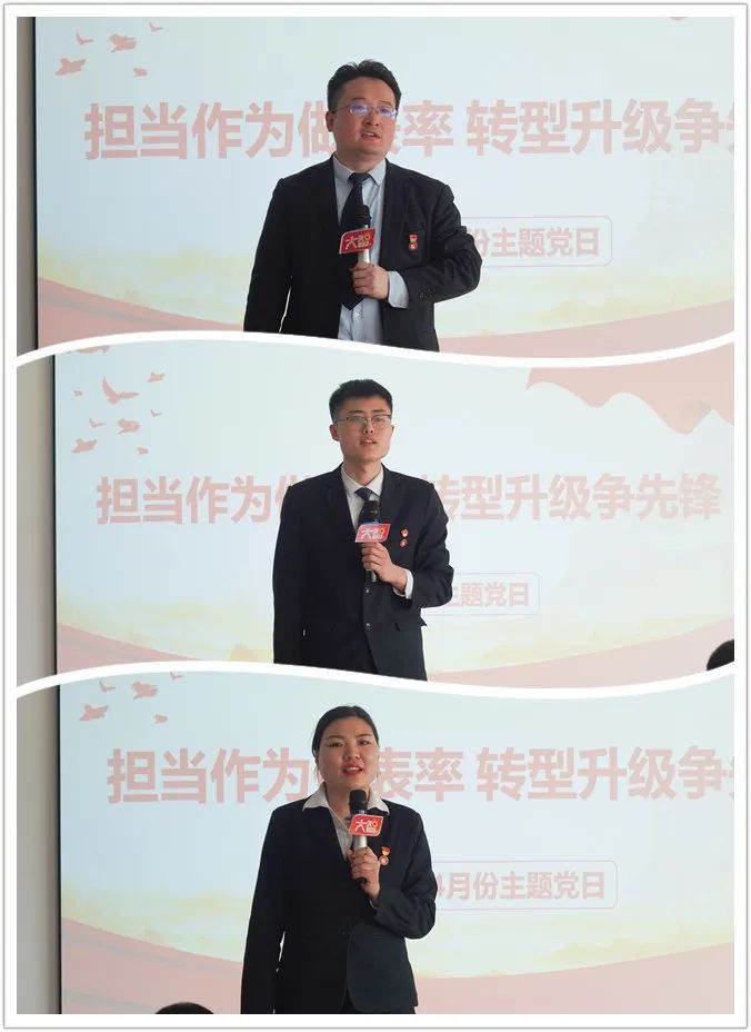 隨后,黨員代表進行分享,他們表示,將珍惜平臺,充分發揮黨員的先鋒模范帶頭作用,不斷提高自我修養,發揮自身價值,為轉型升級貢獻力量。