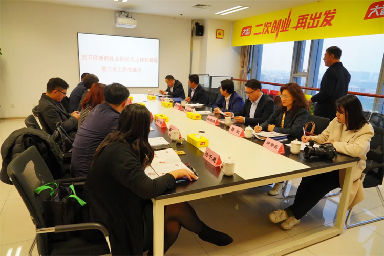 11月20日下午,歷下區新的階層人士掛職鍛煉第三次交流會在大智控股集團召開,歷下區委常委、統戰部部長杜寶現,區委統戰部二級調研員、區社院副院長高振華出席會議。