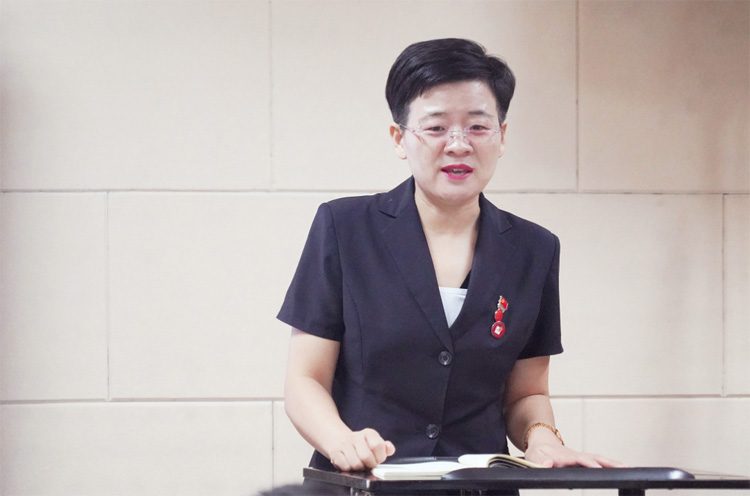 大智控股集團黨委書記王現芹現場勉勵黨員們,弘揚抗戰精神要做到:1.終身不渝地愛國;2.主動擔當責任;3.堅決戰勝困難;4.牢記政治身份;5.立足崗位做貢獻。