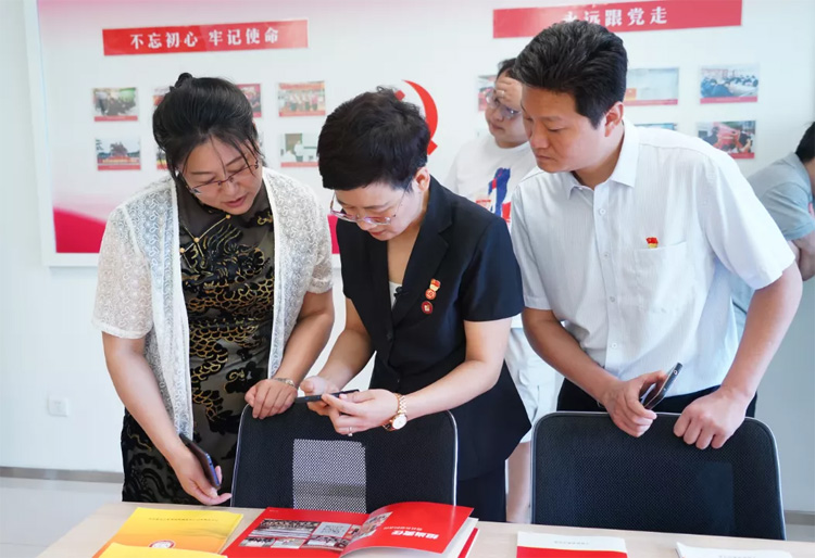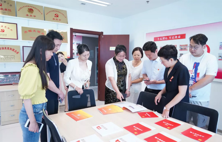 參觀后,圍繞企業(yè)黨建工作開展,雙方展開深入溝通交流,王現(xiàn)芹積極給大家介紹了抓黨建的好處和方法,陳淑平一行對于大智黨建成果給予高度好評。