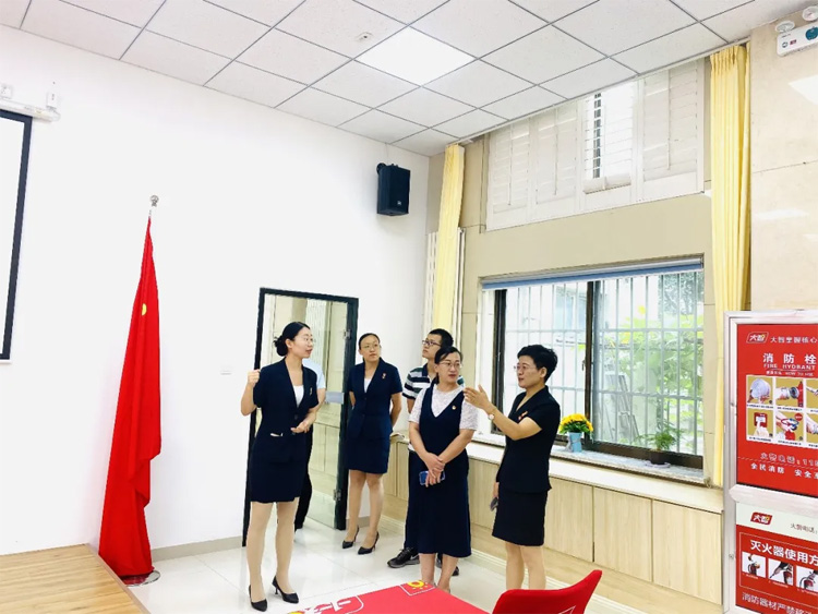 07月26日,淄博市馬尚街道組織部部長黃文娟、馬尚街道團委書記趙淦一行到大智淄博區域調研黨團建設工作,大智控股集團黨委書記王現芹、大智淄博區域黨支部書記田莎莎熱情接待。