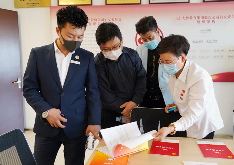 05月13日,山東省美發美容行業協會會長孫明、秘書長高強、執行秘書長陳佳昕、美容專委會會長吳景嶺、常務秘書長李冰一行在濟南市歷下區解放路街道黨辦主任朱東芳陪同下到大智參觀交流黨建工作。