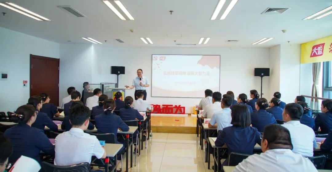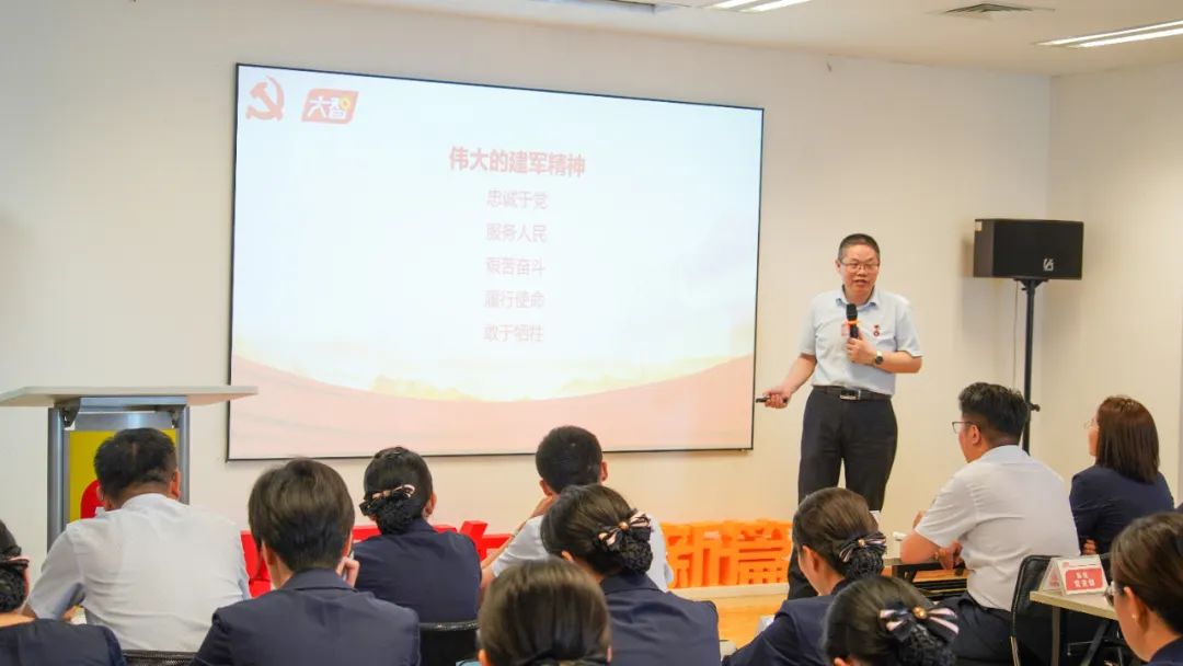 大智黨委委員劉勤章為大家帶來黨課《弘揚建軍精神 凝聚大智力量》,號召黨員們要堅信大智事業必定可成可期,時刻保持“厲兵秣馬、枕戈待旦”的戰備狀態,時刻保持亮劍出鞘、決戰決勝的勇氣與實力。