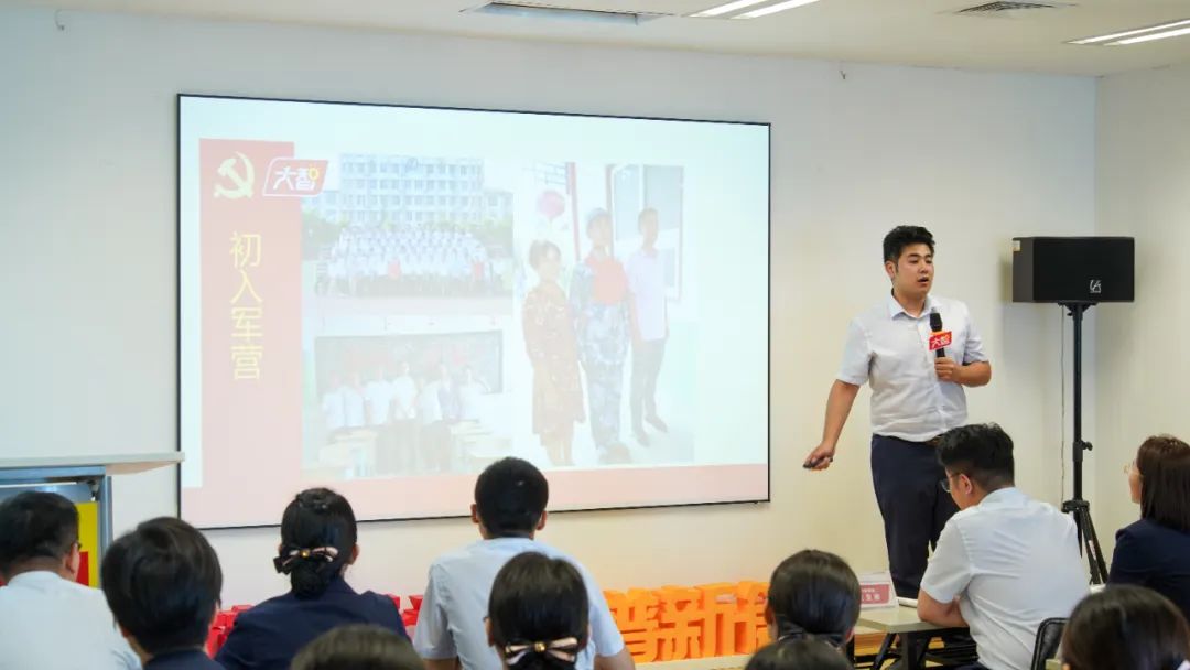 大智金復人力資源部金岞璋家人作為退伍軍人為大家分享了《青春心向黨 奮斗正當時》從人民子弟兵到大智子弟兵的故事。他表示,軍旅生涯錘煉了他能打仗、打勝仗的本領和能吃苦敢吃苦的堅毅品格,在大智平臺上,將繼續把人民軍隊的優良傳統踐行到工作崗位上,持續提高個人素養、職業素養、專業素養,創造性開展工作,為建設百年大智貢獻力量。