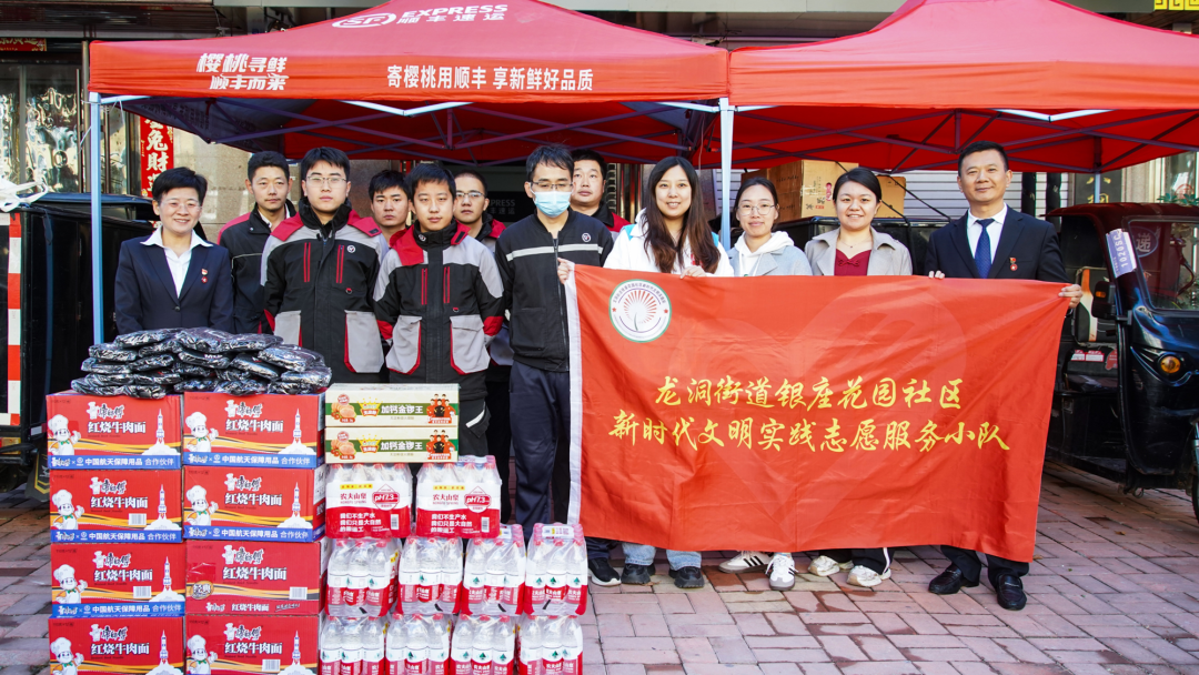 11月7日,大智控股集團黨委聯合龍洞街道銀座花園社區新時代文明實踐志愿服務小隊,向順豐速運歷下銀座花園營業站捐贈物資。