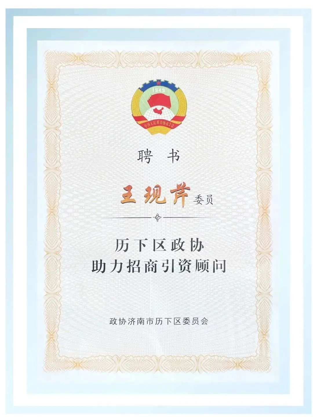 大智黨委書記王現芹被聘為“歷下區政協助力招商引資顧問”