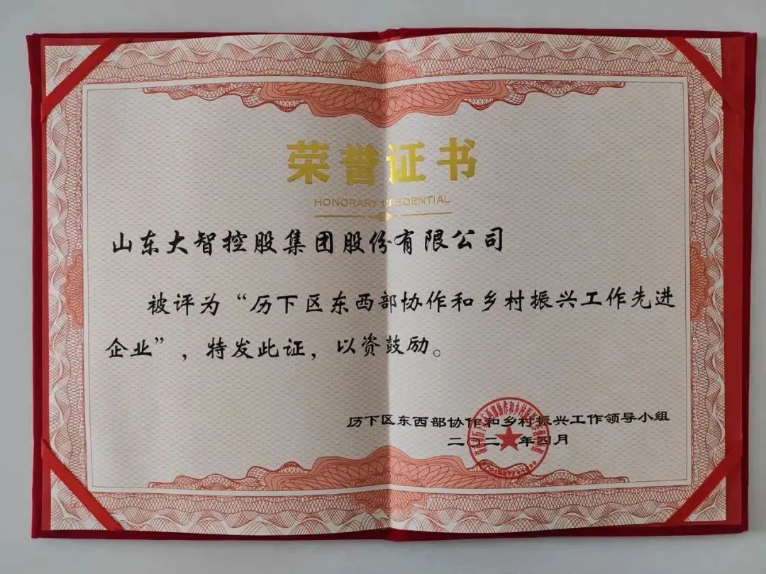 大智被評為“濟南市歷下區東西部協作和鄉村振興工作先進企業”