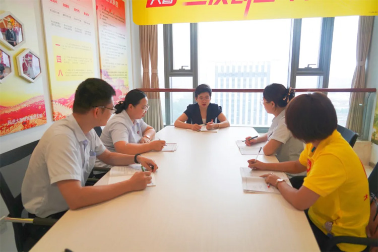 07月26日,淄博市馬尚街道組織部部長黃文娟、馬尚街道團委書記趙淦一行到大智淄博區域調研黨團建設工作,大智控股集團黨委書記王現芹、大智淄博區...