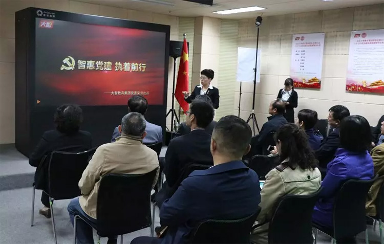 大智控股集團黨委書記王現芹首先向考察團詳細介紹了大智“智惠黨建一三九”工作模式。大智始終堅持黨引領一切,在黨建引領下,形成了“一帶一促”群團建設理念和“智惠+”群團建設模式。期間,考察團一行集體觀看了大智“智惠黨建”宣傳片。