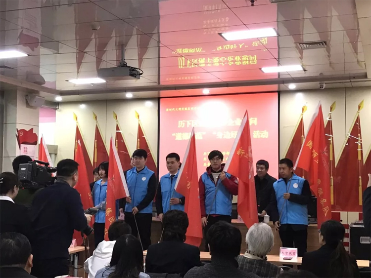 活動中,馬宏展、田銘南、吳強向大智教育集團等愛心企業組成的新時代文明實踐志愿服務隊授旗。現場,常廣成代表大智教育集團團委向道德模范、身邊好人代表發放了新春禮包。